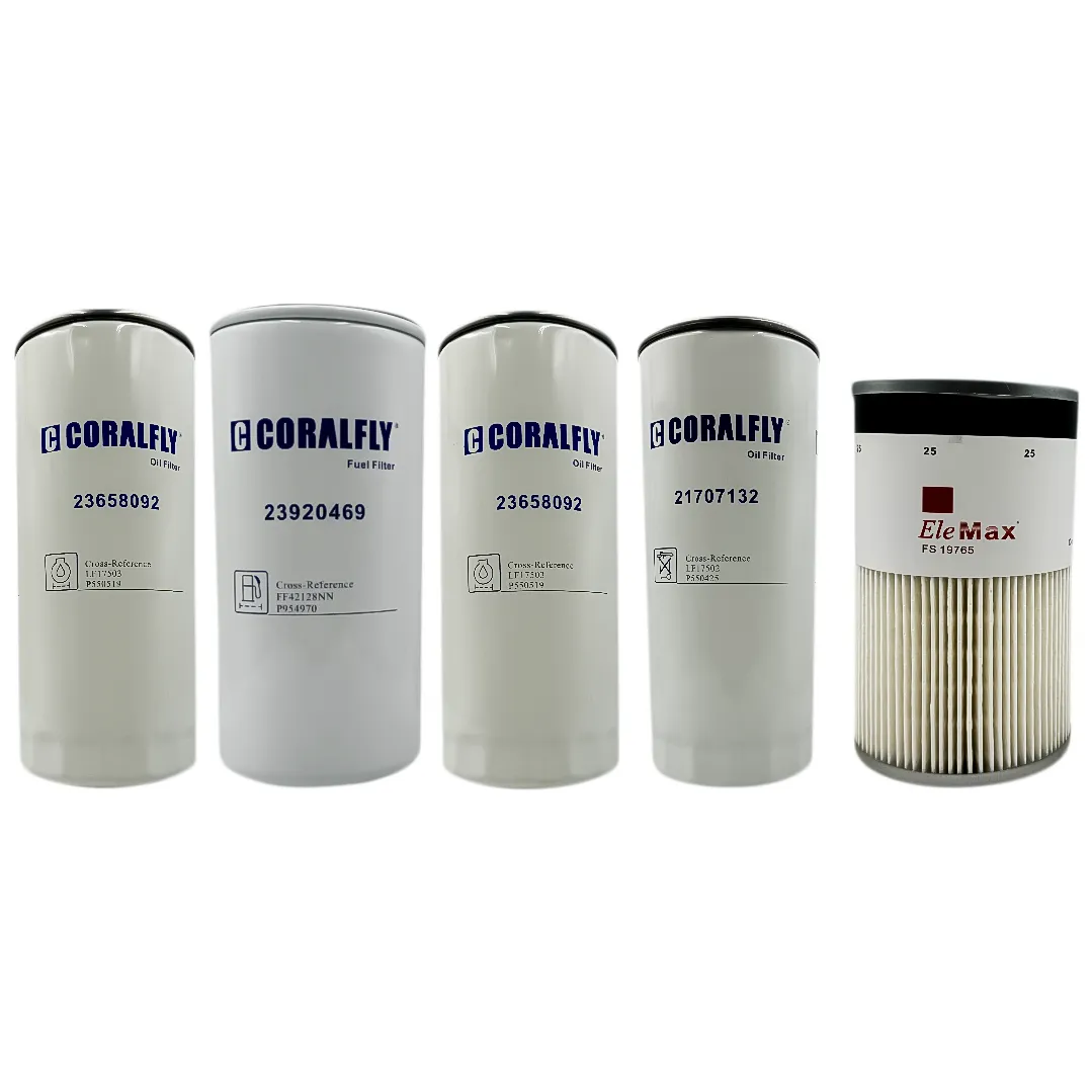 The Coralfly Fuel Kit comes in its original packaging and is ready to install. This filter kit is an essential component to ensure the smooth operation of your unit. Don’t miss out on this great opportunity to upgrade your unit and keep it running smoothly.Oil Fuel Filters Kit include: Coralfly Oil Filter 21707132, 2 Coralfly Oil Filters 23658092, Coralfly Fuel Filter 2390469, Coralfly Fuel Water Separator FS19765.